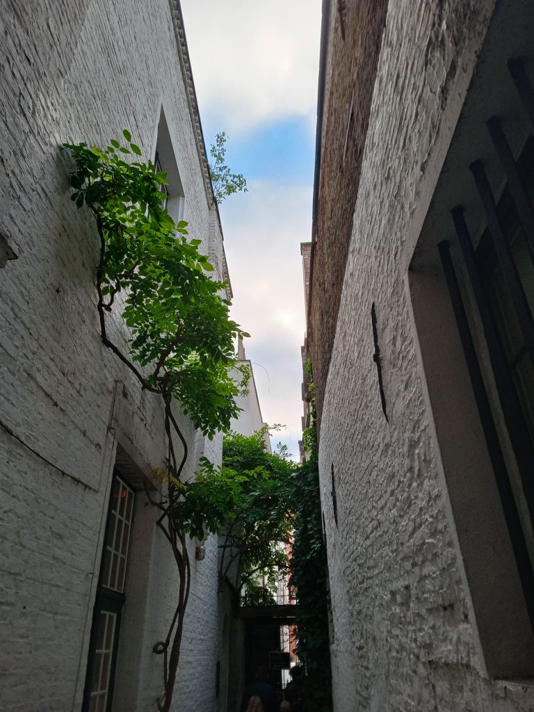 Callejón Vlaeykensgang, un callejón escondido que conserva todo el encanto medieval de antaño, es otro de los lugares que ver en Amberes más sorprendentes. A día de hoy, en esta calle en el que predomina el blanco de sus casas tradicionales del siglo XVI, se han sustituido las viviendas por bares y restaurantes, en los que podrás hacer una parada para recuperar fuerzas en tu recorrido por la ciudad.