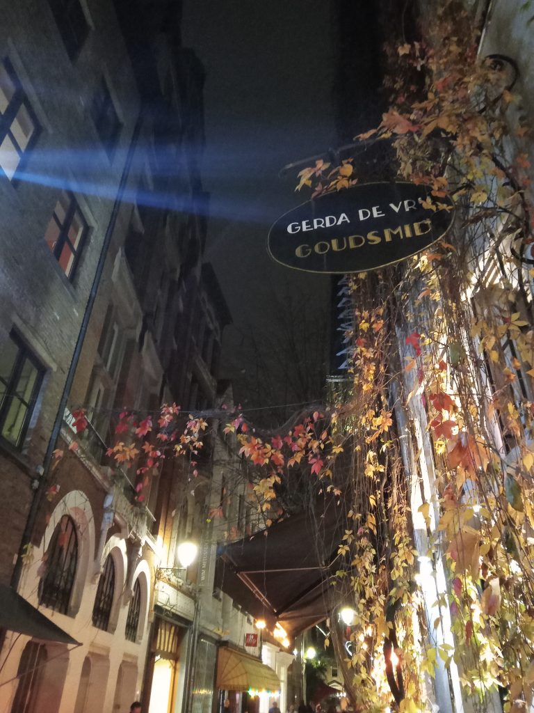 Precioso callejón donde se congregan multitud de gente a disfrutar de la noche de Amberes.
