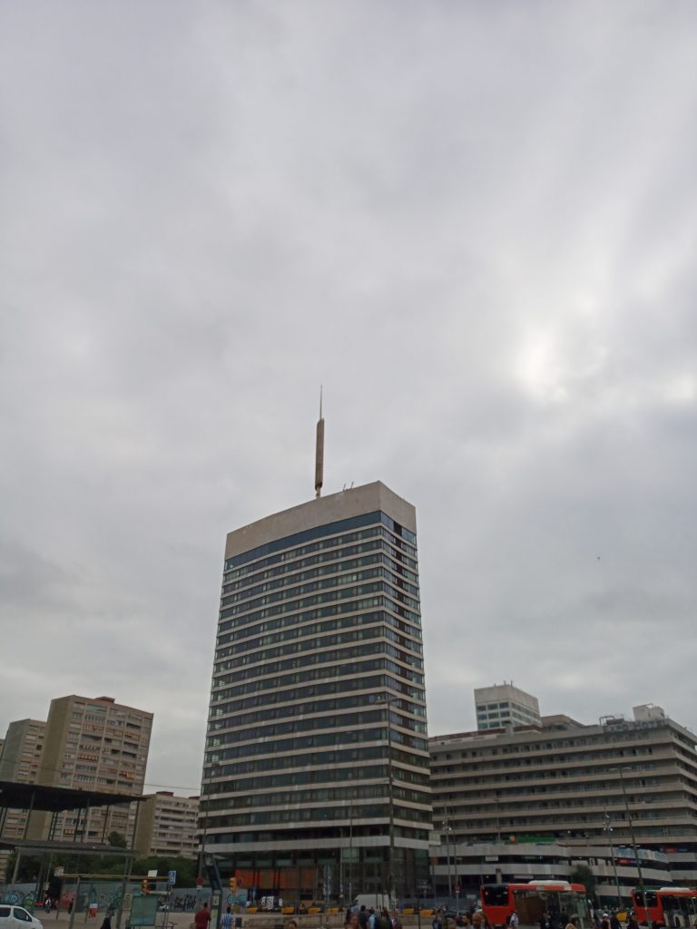 Edificio Gran Hotel Torre Catalunya visto desde la estación de tren de Sants.