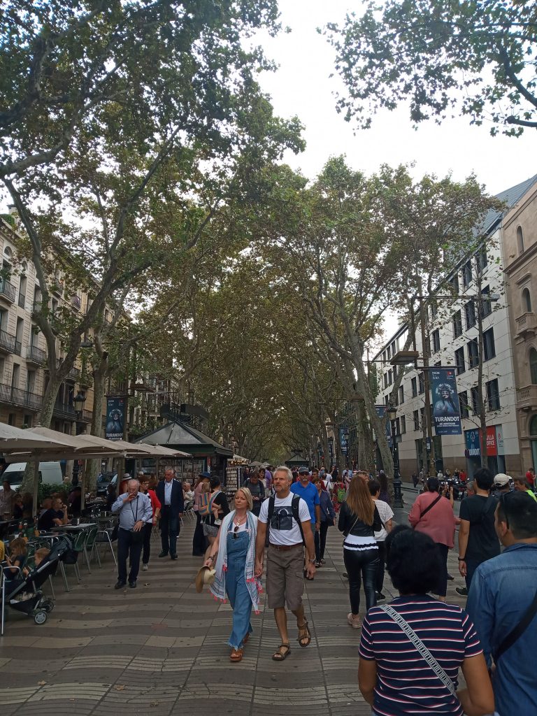 Las Ramblas, el emblemático paseo de la ciudad de Barcelona que discurre entre la plaza de Cataluña, centro neurálgico de la ciudad y el puerto antiguo.
