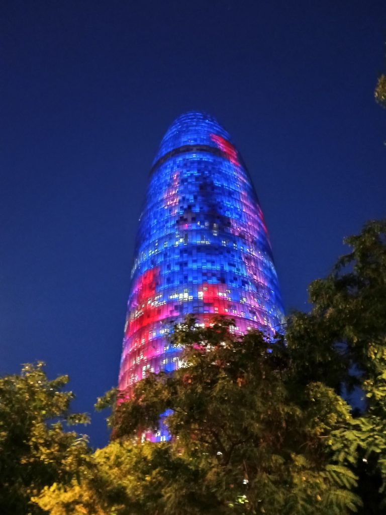 La Torre Glòries, anteriormente Torre Agbar (acrónimo de Aguas de Barcelona), ubicado en la confluencia de la avenida Diagonal y la calle Badajoz, junto a la plaza de las Glorias, y que marca la puerta de entrada al distrito tecnológico de Barcelona conocido como Distrito 22@. Tiene 34 plantas sobre la superficie además de cuatro plantas subterráneas para un total de 144 metros de altura.
