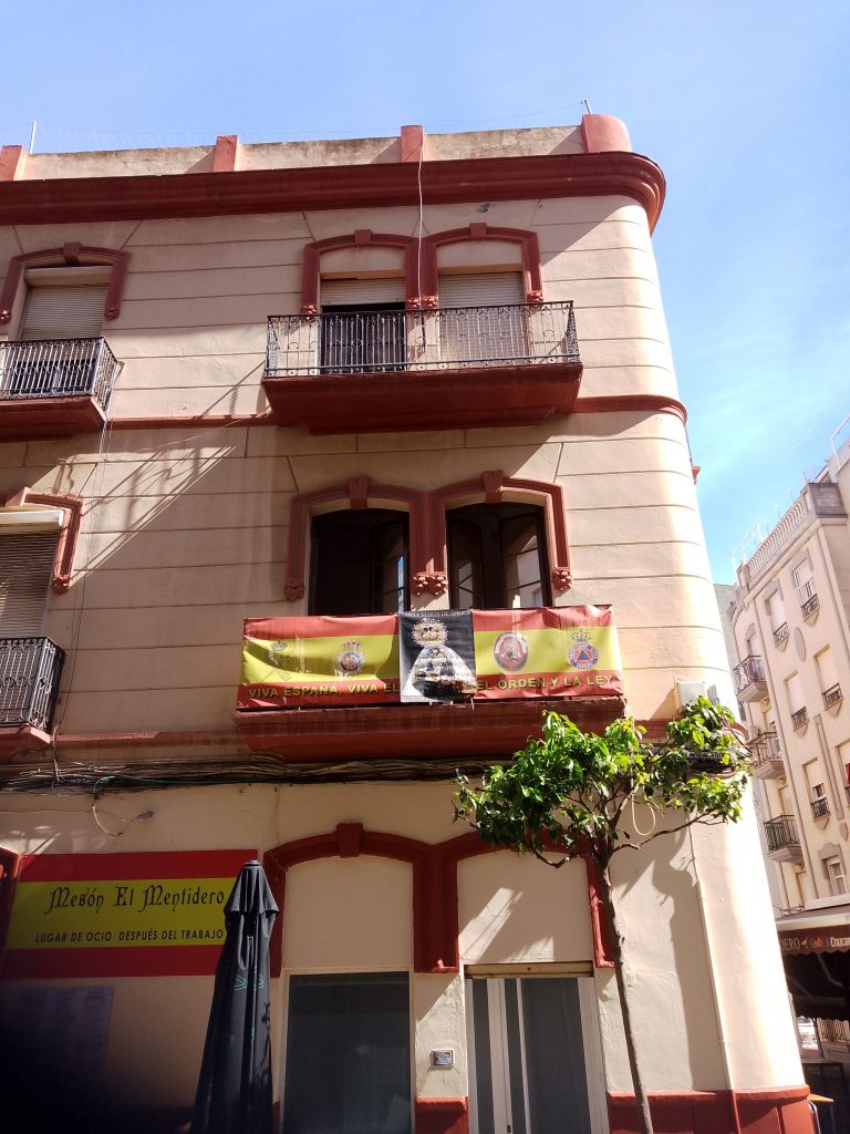 Bar castizo español «muy patriota» cerca de los aledaños en el puerto de la ciudad autónoma.
