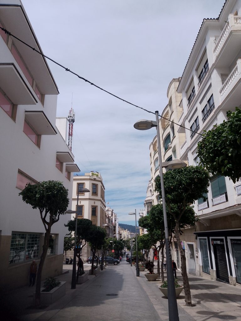 Paseo Revellín de Ceuta repleto de comercios y centro de hosteleria.