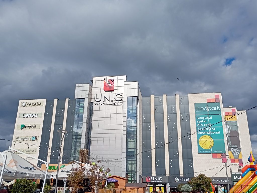 Vista panorámica del centro comercial UNIC. Se trata de un espacio comercial en la principal avenida de la ciudad, Bulevar Stefan cel Mare si.