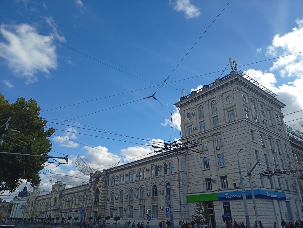 Panorámica de la Academia de Moldavia de Ciencias. Se trata de un edificio espléndido y grandioso situado muy cerca del bulevard Ștefan cel Mare.