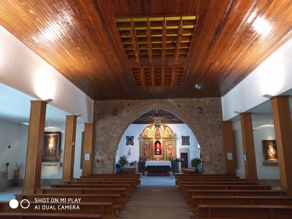 Interior de la Emita Nuestra Señora de los Remedios, patrona de Colmenar Viejo, que fue descubierta en 1914 durante una reforma de la anterior imagen, llamada «de vestir», cuando se descubre oculta en su interior. Esta pequeña imagen responde a la tipología de Virgen sentada en un trono con el Niño sentado en su rodilla izquierda, que históricamente tiene su período de esplendor a partir del siglo XII.