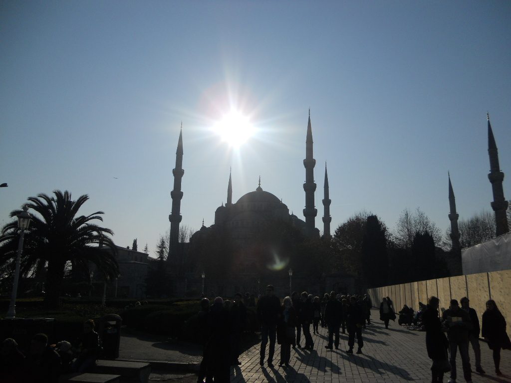 La mezquita Azul o mezquita del Sultán Ahmed es una de las grandes mezquitas de Estambul, obra de Sedefkar Mehmet Ağa, discípulo del arquitecto Sinan. Está situada frente a la iglesia de Santa Sofía, separadas ambas por un jardín, y fue la única de la ciudad con seis alminares hasta la construcción de la Mezquita de Çamlıca, inaugurada en 2016. Su magnífico exterior es acorde con su suntuoso interior, en el que una verdadera sinfonía de bellísimos mosaicos azules de Iznik logran una atmósfera muy especial.