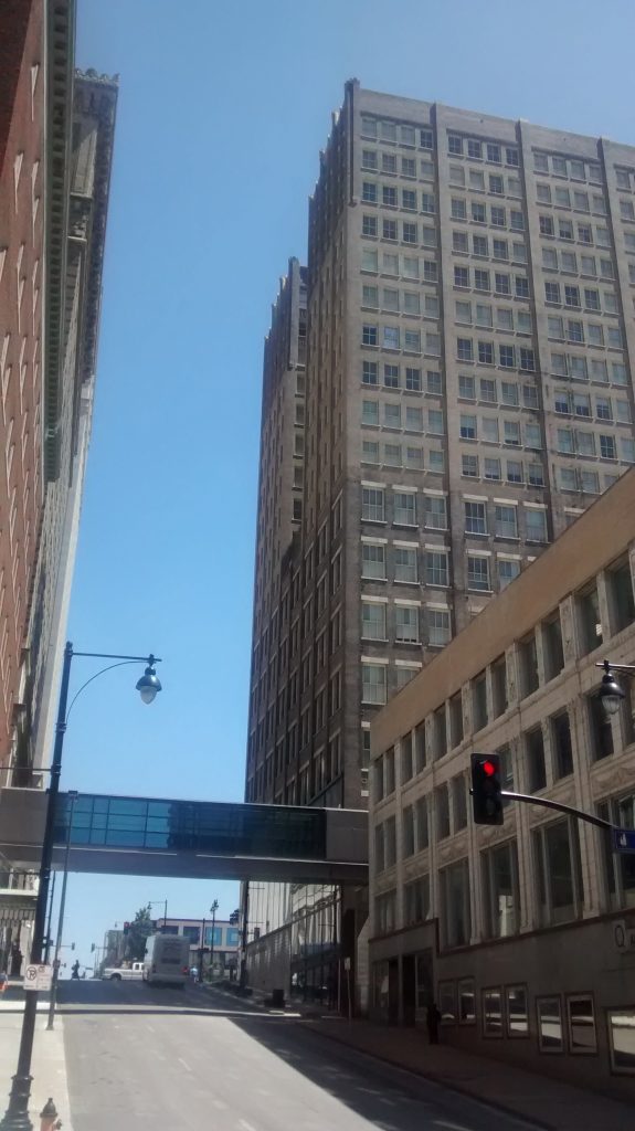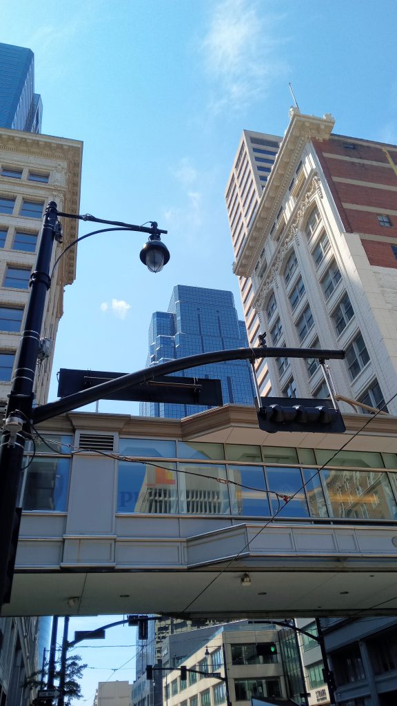Puente para ciudadanos entre edificios en el downtown de Kansas City,