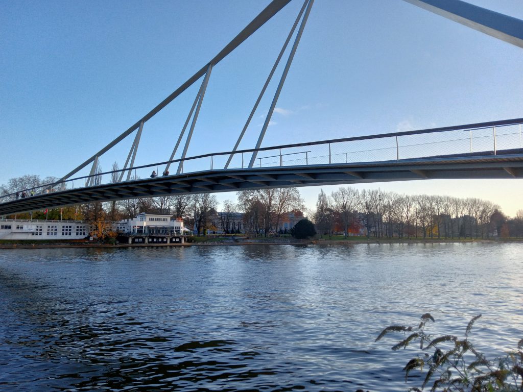 Bonito puente pasarela sobre el río Mosa en el centro de la ciudad.