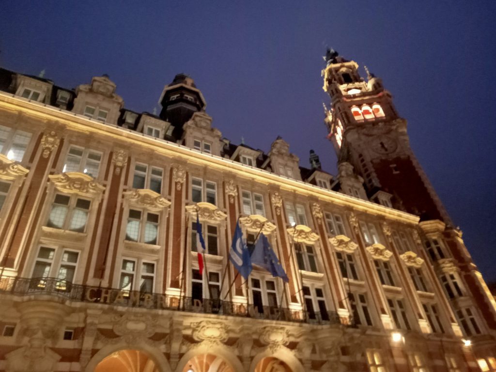 Torre campanario del ayuntamiento de Lille la cuál tiene 104 m de altura y es el campanario más alto de un edificio secular de Europa. Fue construido en el período de entreguerras en una mezcla de estilos flamenco y Art Deco. Está en la Lista del Patrimonio Nacional de la UNESCO.