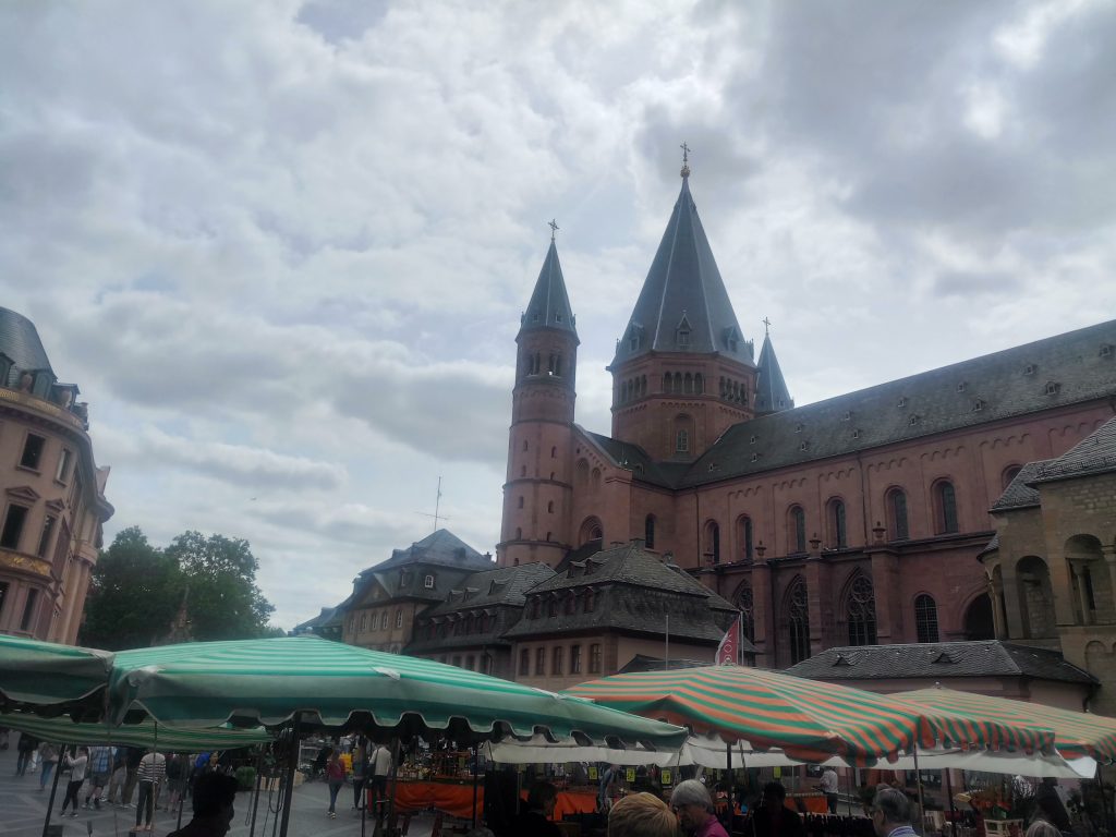 La catedral de Maguncia es una catedral situada en la ciudad alemana de Maguncia. Es una enorme e imponente basílica de arenisca roja y uno de los más destacados ejemplos de arquitectura románica existentes en el mundo. Junto con las cercanas catedrales románicas de Espira y Worms constituye una de las llamadas catedrales imperiales (Kaiserdome) de la región alemana de Renania-Palatinado. La catedral de Maguncia es un edificio románico. Un elemento distintivo y característico de esta catedral es la galería de columnas que bordea todo el perímetro edificio, justo debajo de la línea del tejado.