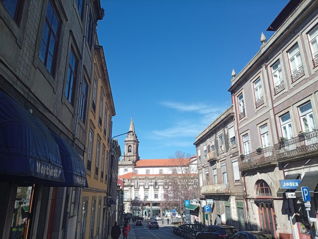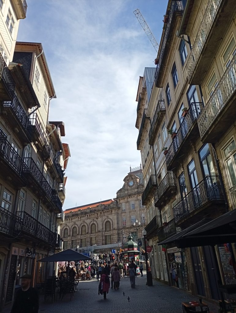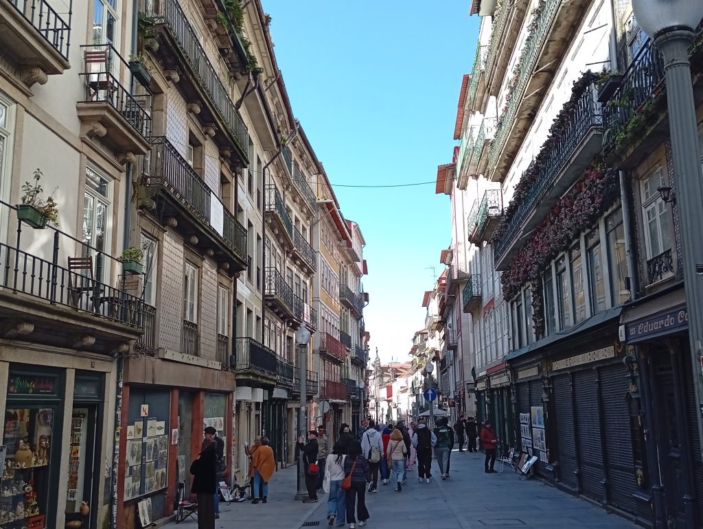 Calle céntrica de Oporto donde se congregan múltiples turistas. Los establecimientos son orientados al turismo.