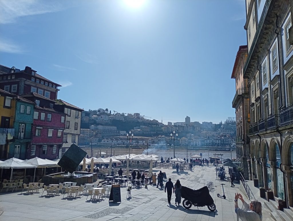 Pleno centro de Oporto. Hay folklore local donde diferentes orquestas de música entretienen a los viandantes.
