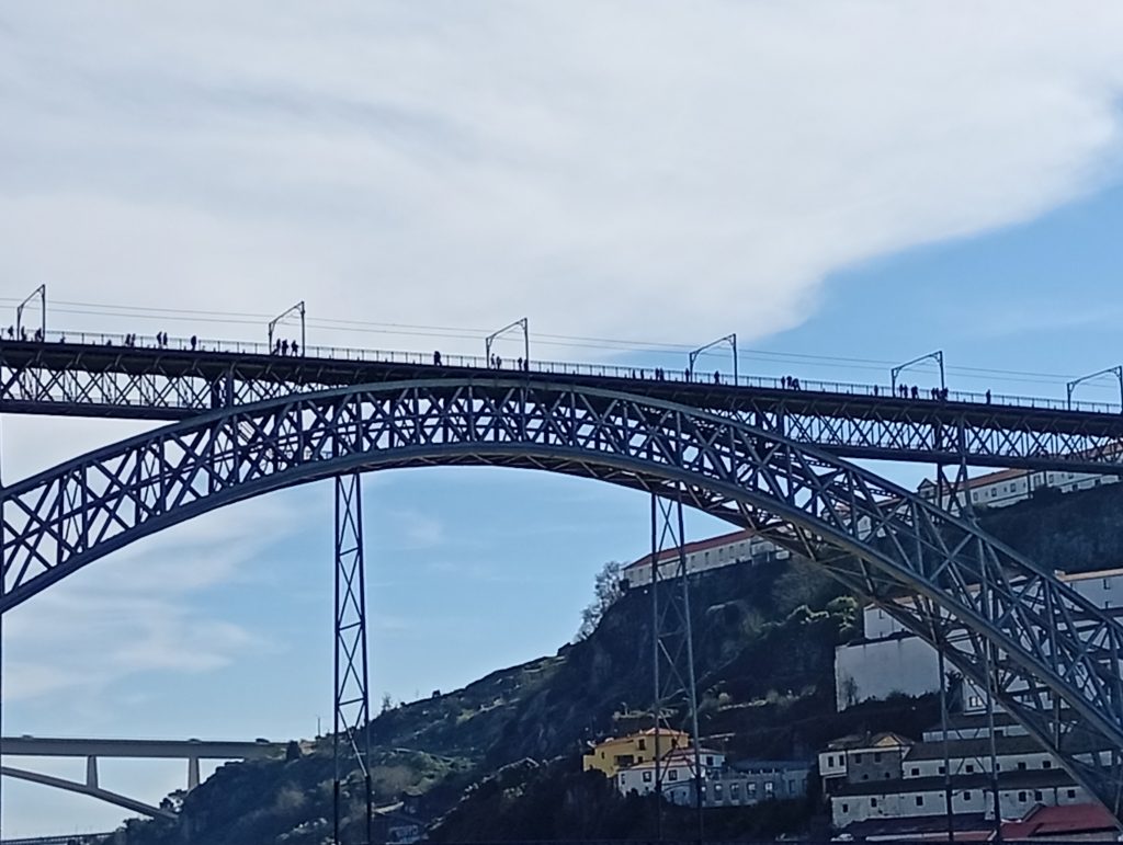 El Puente Luiz I comúnmente conocido como Puente Dom Luís I, es un puente de arco metálico de dos niveles que cruza el río Duero entre las ciudades de Oporto y Vila Nova de Gaia en Portugal . En el momento de su construcción, su tramo de 172 metros (564 pies) era el más largo de su tipo en el mundo.