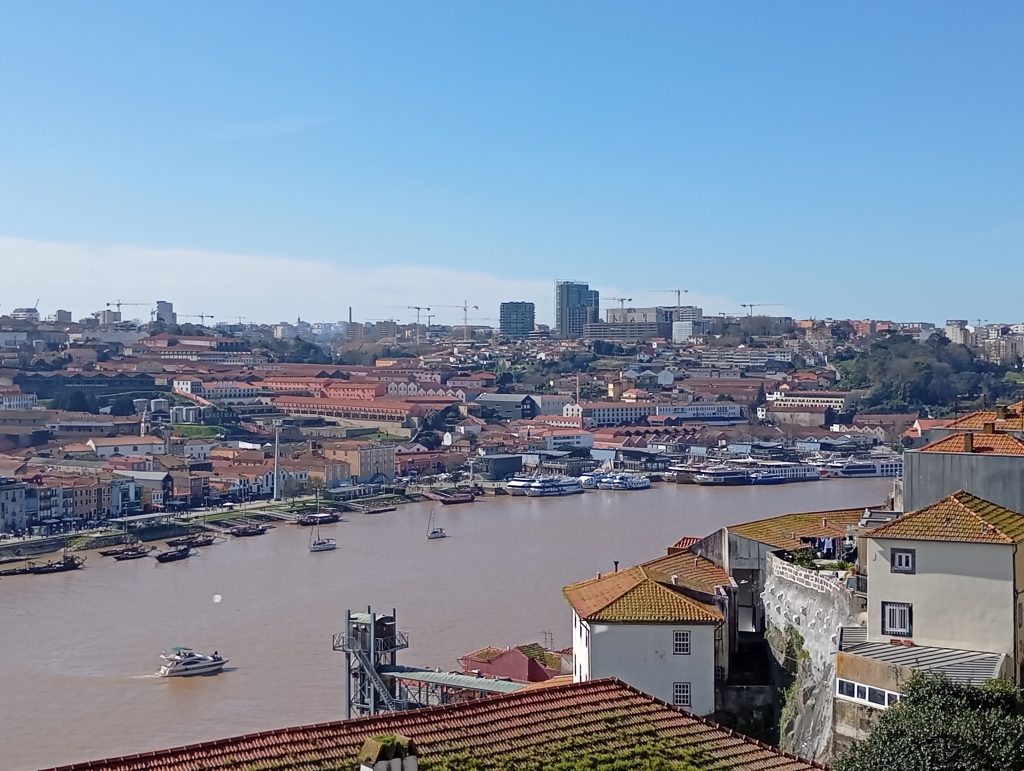 Vista panorámica opuesta desde el puente Luiz I del río Duero.