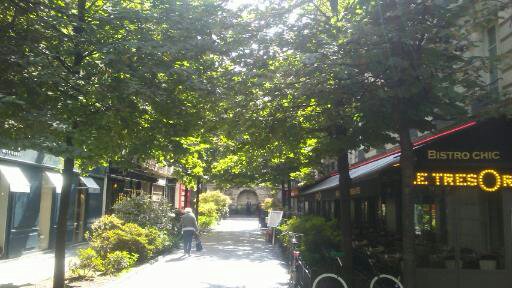 Zona transitada en el barrio de Le Marais con múltiples zonas de ocio.