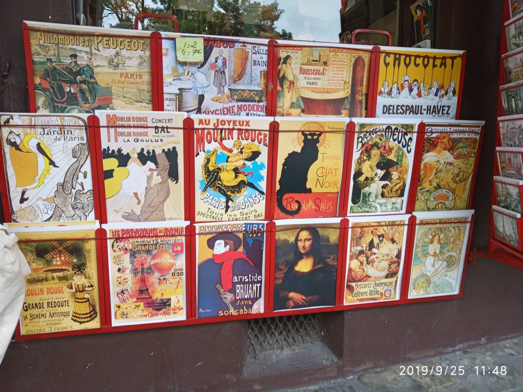 Láminas de dibujos sobre París en el barrio de Montmartre.