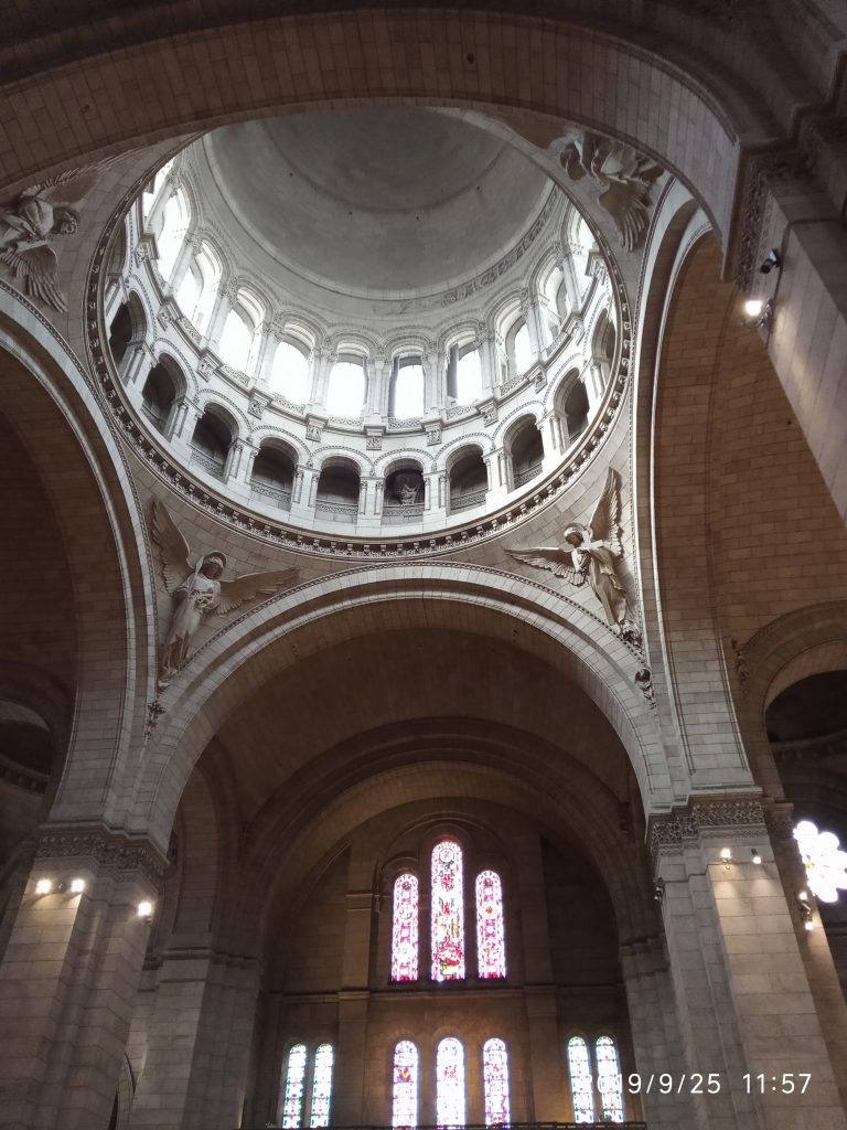 Sacre Coeur la planta del edificio está más central que basilical. Tiene forma de cruz griega, adornada con cuatro cúpulas: el domo central, de 80 m. de altura, está tocado por una linterna, formada por una columnata.
