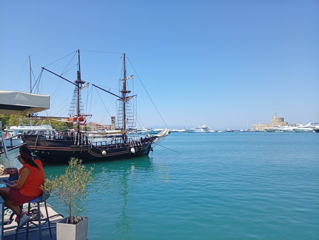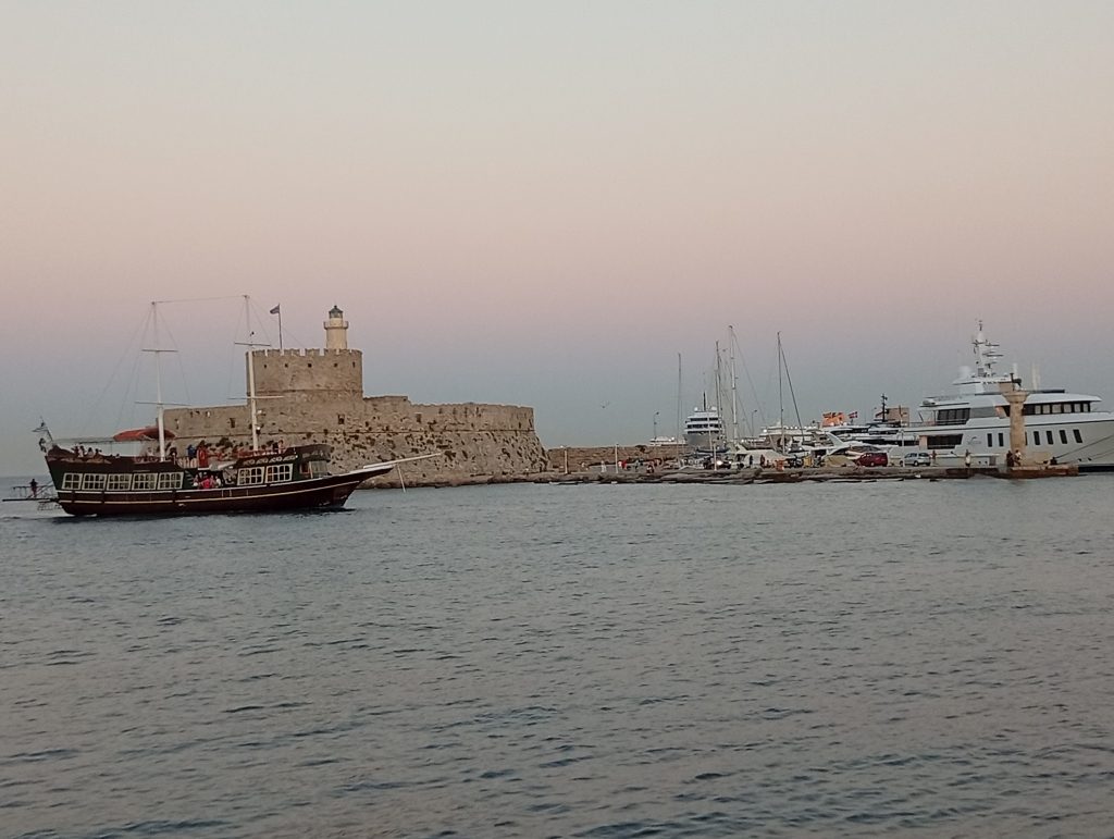 El puerto de Mandraki es el más antiguo de Rodas y, en tiempos de los Caballeros de San Juan, funcionaba como puerto militar. Su nombre curioso, Mandraki, significa literalmente “establo”, porque los barcos entraban bien ordenaditos, como si fueran caballos, para aprovechar al máximo el espacio protegido por el muelle.