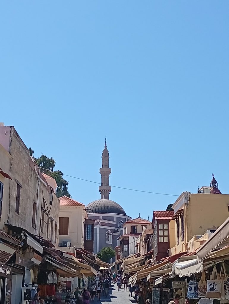 Vista panorámica de la mezquita de Solimán es un edificio otomano en la ciudad griega de Rodas. Fue encargado por el sultán Solimán el Magnífico en 1522, justo después de la toma de la ciudad por los turcos otomanos. Restaurada a principios del XIX, y de nuevo en las décadas de 1990 y 2000, la mezquita acoge exposiciones culturales desde 2005.