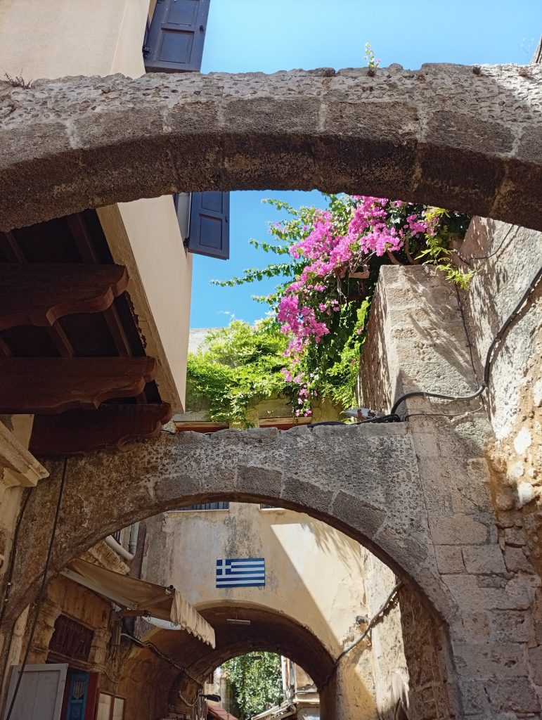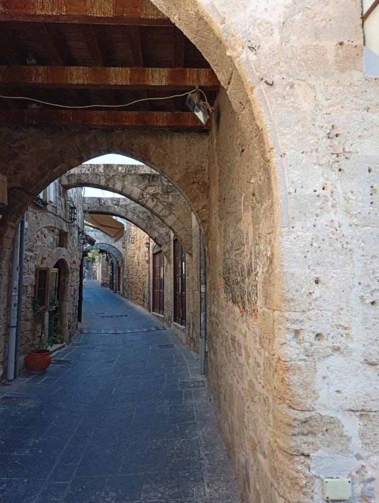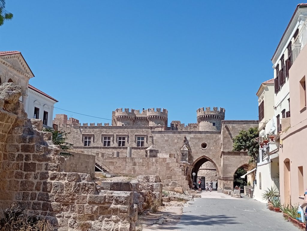 Dentro de la ciudad medieval y las murallas se encuentra en la parte más alta de la Calle de los Caballeros. Un majestuoso y lujoso edificio que da personalidad a la ciudad de Rodas. Así llegamos hasta la ciudad vieja conocida como el Burgo, repleta de antiguos y bellos edificios.