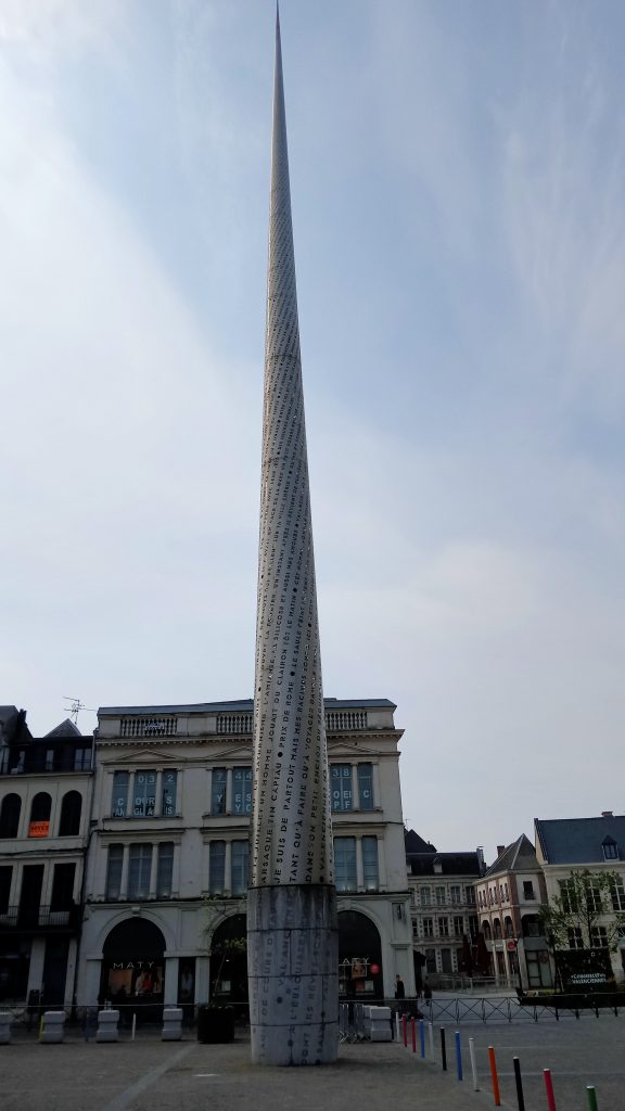 Flecha de Valenciennes, la obra de Jean-Bernard Métais titulada «Valenciennes» es un imponente punto de 45 metros de altura que simboliza el antiguo campanario que se derrumbó en 1840. Diseñada en metal, esta aguja gigante contiene nada menos que 2000 palabras recogidas de Valenciennes o visitantes y recortado del material. La obra inaugurada el 21 de diciembre de 2007 es ahora parte integral de la plaza central de la ciudad, jugando con las luces y dibujando la mirada desde la base hasta el cielo.
