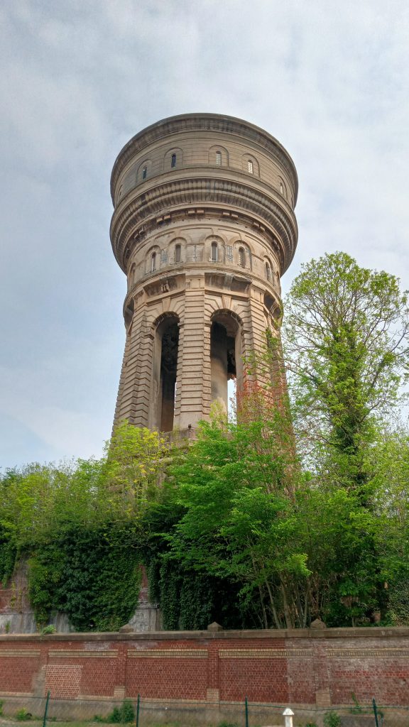 Vista de la antigua torre de agua desde una plaza en frente del Museo de Arte .