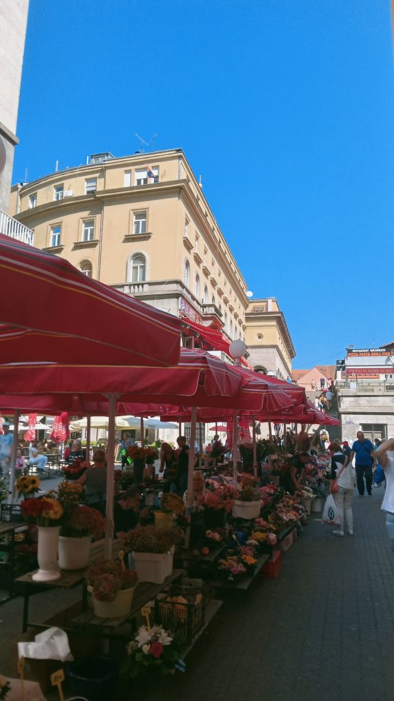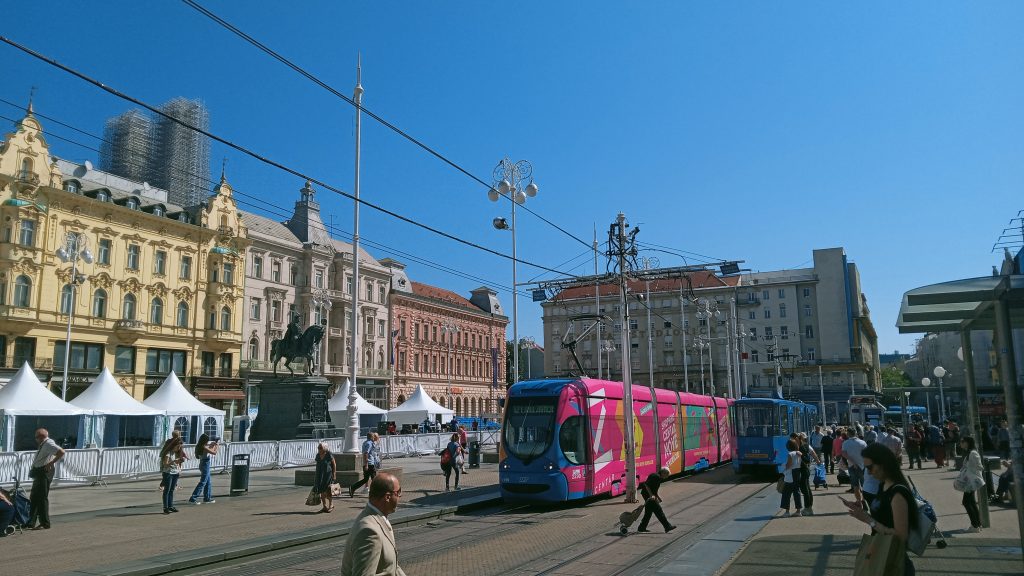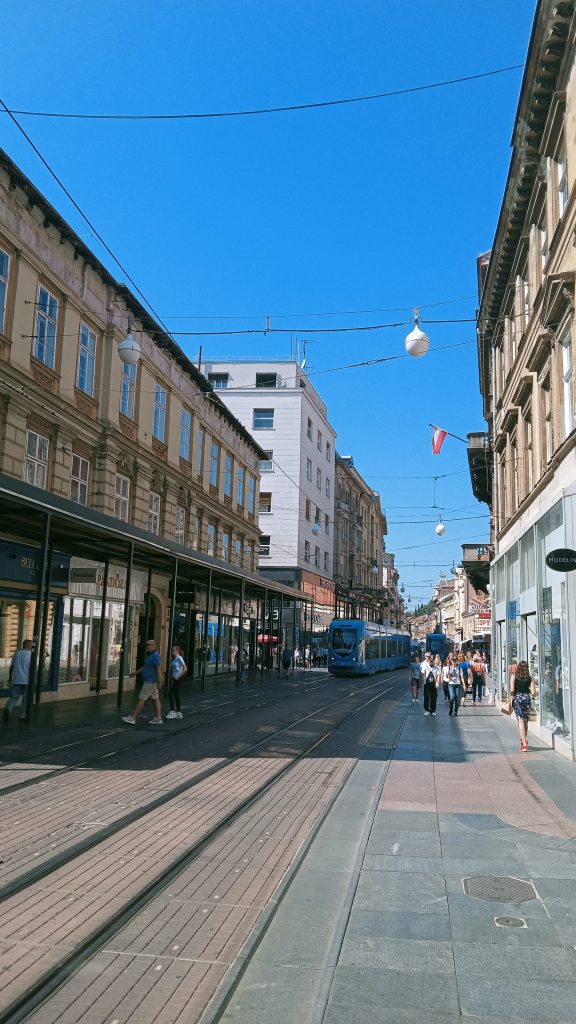 Vía Mesnicka ,céntrica muy animada. La línea de tranvía (el principal medio de transporte usado en el centro de la ciudad), mientras que la parte más externa de Zagreb se une a la otra red por medio de buses.