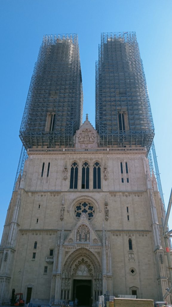 La catedral de Zagreb, situada en el barrio de Kaptol (parte alta de la ciudad) es un templo católico dedicado a la Asunción de María y a San Esteban y San Ladislao de Hungría. Es no solo el edificio más alto de Croacia sino también el edificio sacro más monumental en estilo gótico al sureste de los Alpes. La catedral es típicamente gótica, al igual que su sacristía, que es de gran valor arquitectónico. La primera piedra se colocó en 1093. La catedral resultó afectada en 1880 por un terremoto que obligó a una importante reconstrucción del edificio, especialmente de la fachada diseñada por el prestigioso arquitecto austríaco, Hermann Bollé, junto a los dos campanarios de 105 metros de alto que se han convertido en una referencia visible desde la mayor parte de la ciudad. El interior y una de sus dos torres resultó dañada en un nuevo terremoto que tuvo lugar el 22 de marzo de 2020.