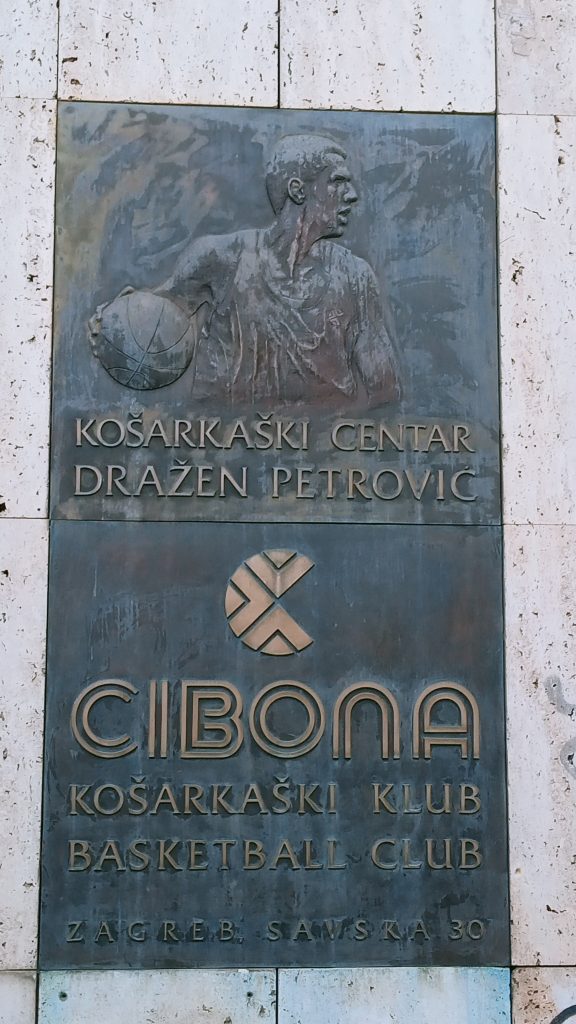 Placa del club de baloncesto Cibona Zagreb en los aledaños de centro deportivo Drazen Petrovic.