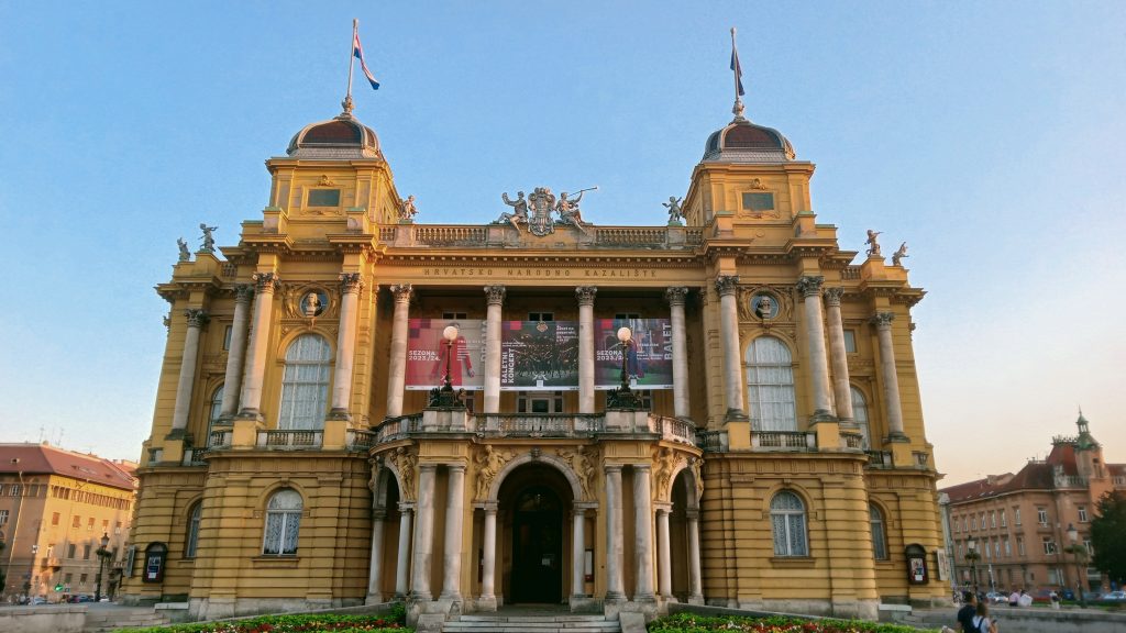 El Teatro nacional de Croacia en Zagreb fue construido en el año 1840. Al año siguiente ganó el apoyo del gobierno llevándolo a un nivel similar al de muchos otros teatros nacionales a lo largo de Europa. En 1870 una compañía nacional de opera fue fundada en el teatro. El teatro se mudó a otro edificio en 1895. El emperador austro-húngaro Francisco José I estuvo en la inauguración de este nuevo edificio. El edificio en sí mismo era un proyecto de los famosos arquitectos vieneses Ferdinand Fellner y Herman Helmer, cuya empresa había construido varios teatros en Viena. Las celebraciones por el primer centenario de la construcción fueron en el 14 de octubre de 1995.